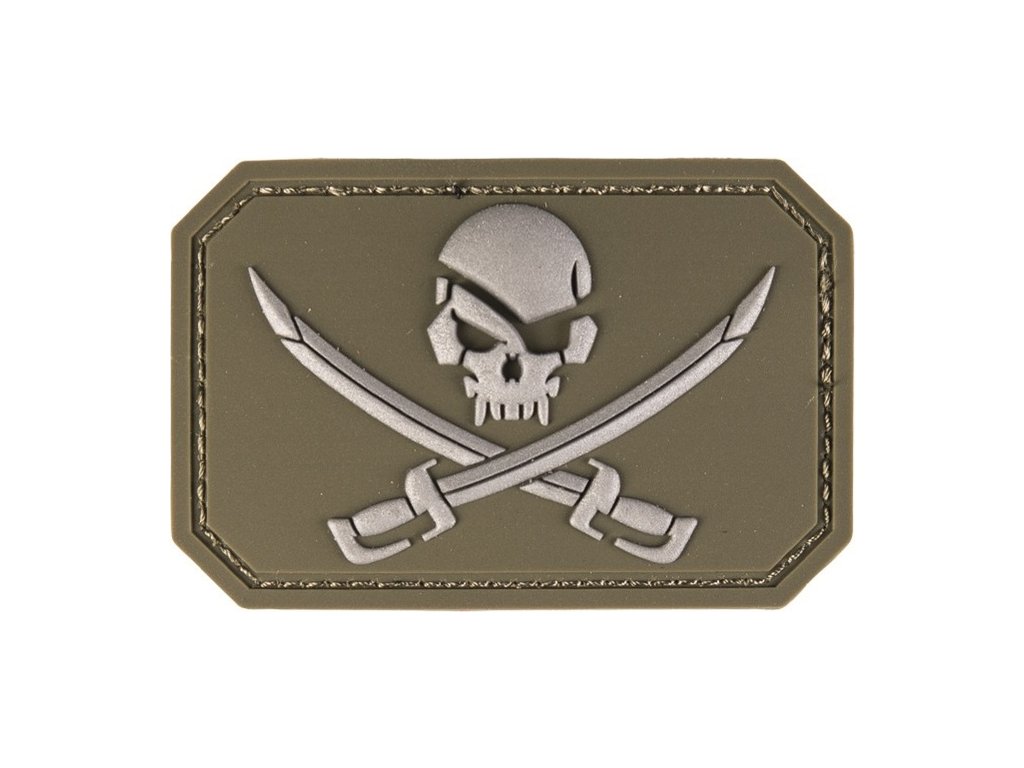 Nášivka pirátska lebka so skríženými mečmi 3D PVC Jolly Roger Olive Drab zelená