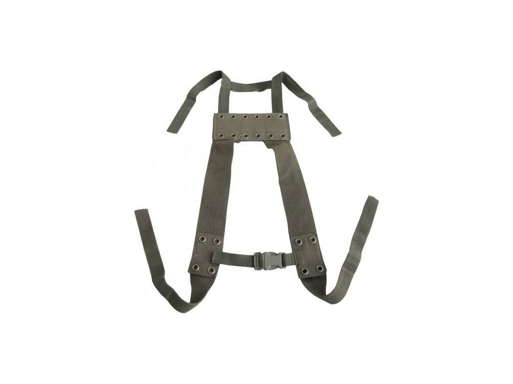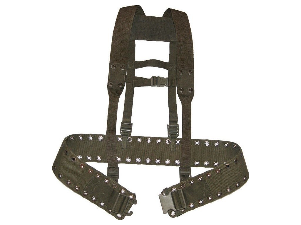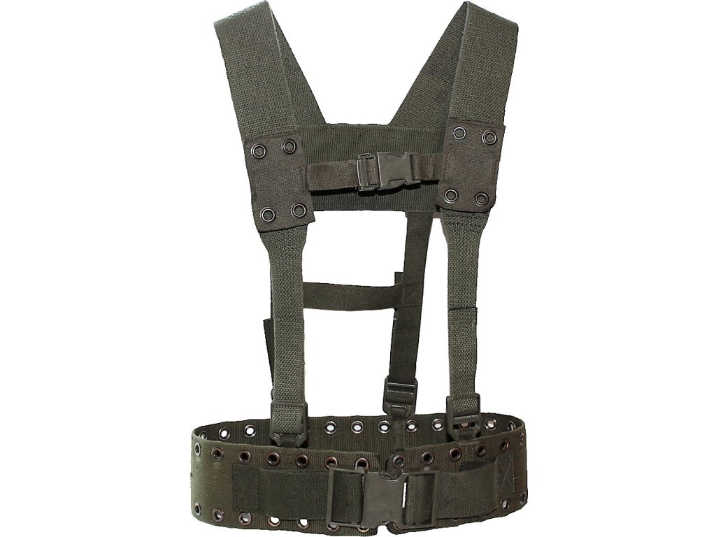 - Original German Army Bundeswehr Webbing Rig System Tactical Belt s H-strap harness, Olive, used.