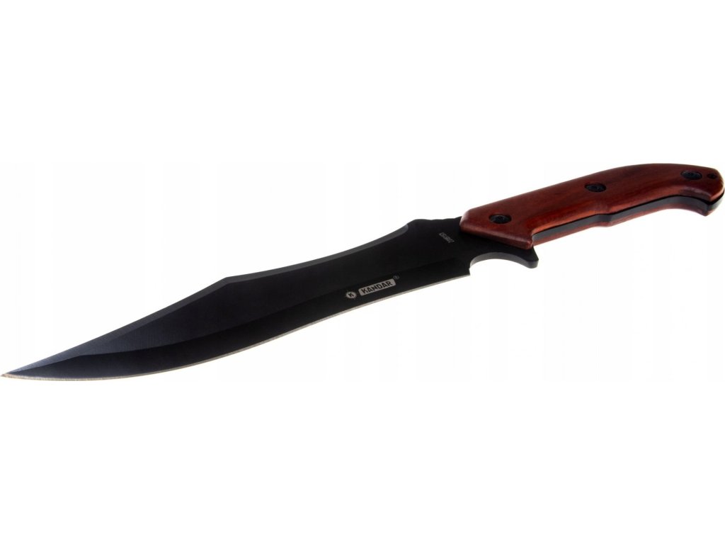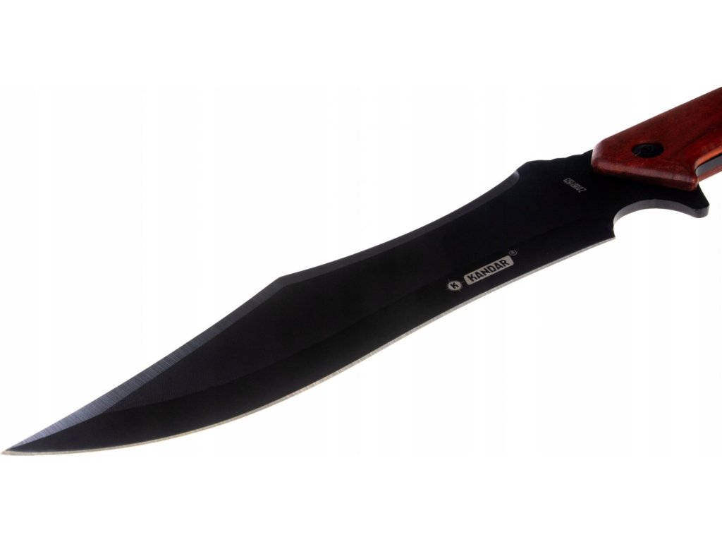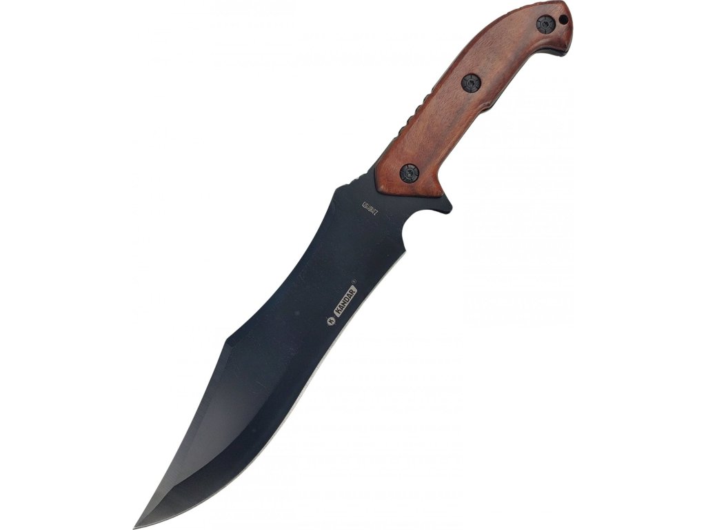 Čepeľ: Čepeľ je čierna, pevná a má výrazný, prehnutý tvar. Na čepeli je viditeľné logo výrobcu "KANDAR".