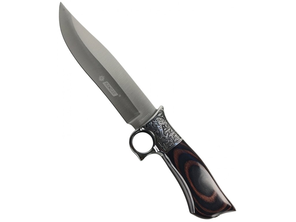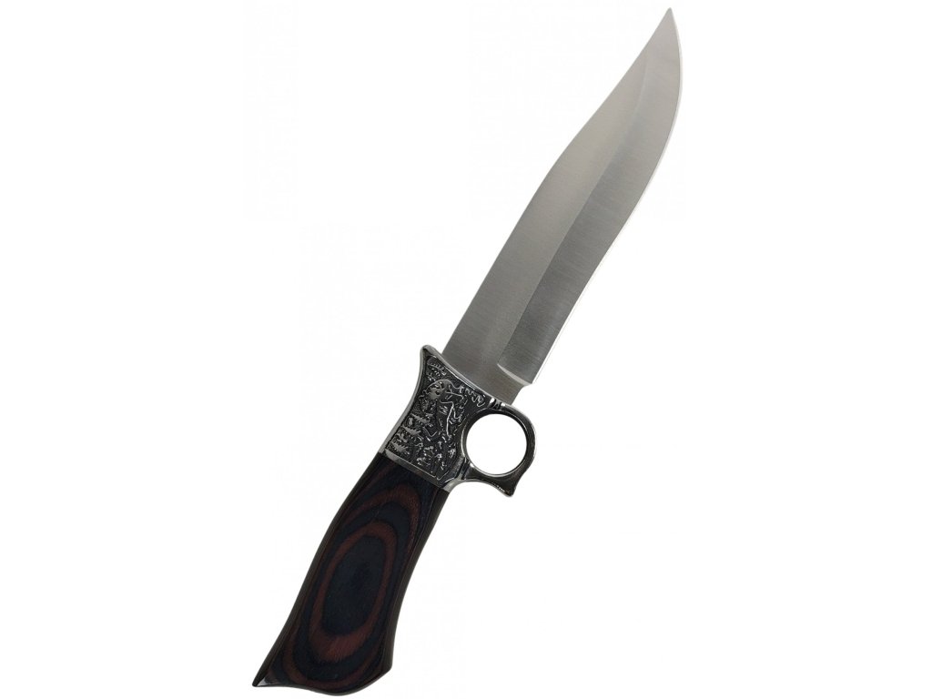 Tento veľký poľovný nôž má úhľadnú kónickú čepeľ 440C, nabrúsenú do ostrej hrany. Kovový chránič prsta je do detailu prepracovaný.