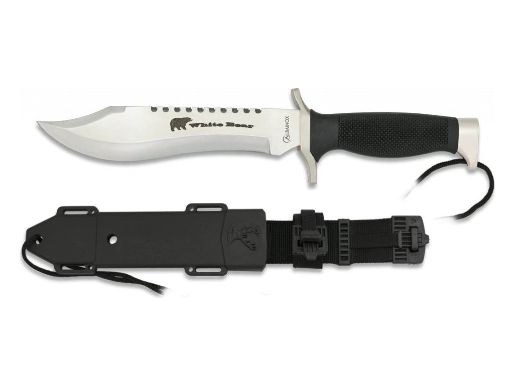 Albainox White Bear nôž 32328 je pevný nôž s pevnou čepeľou o dĺžke 18 cm so saténovou povrchovou úpravou, ktorá je vybavená hladkým a pílkovým ostrím. Rukoväť je z textúrovaného tvrdého plastu a nôž je dodávaný s plastovým puzdrom s možnosťou pripevnenia na opasok, vestu alebo batoh. Čepeľ je vyrobená z kvalitnej nerezovej ocele hrúbky 4,6 mm, celková dĺžka noža je 30,6 cm a jeho šírka je cca 3,9 mm.
