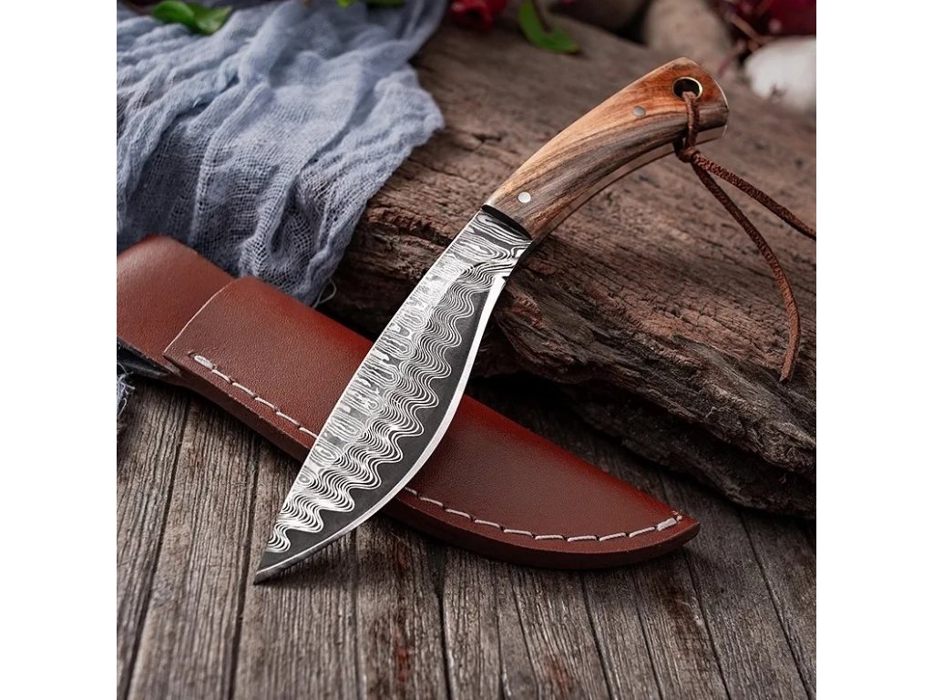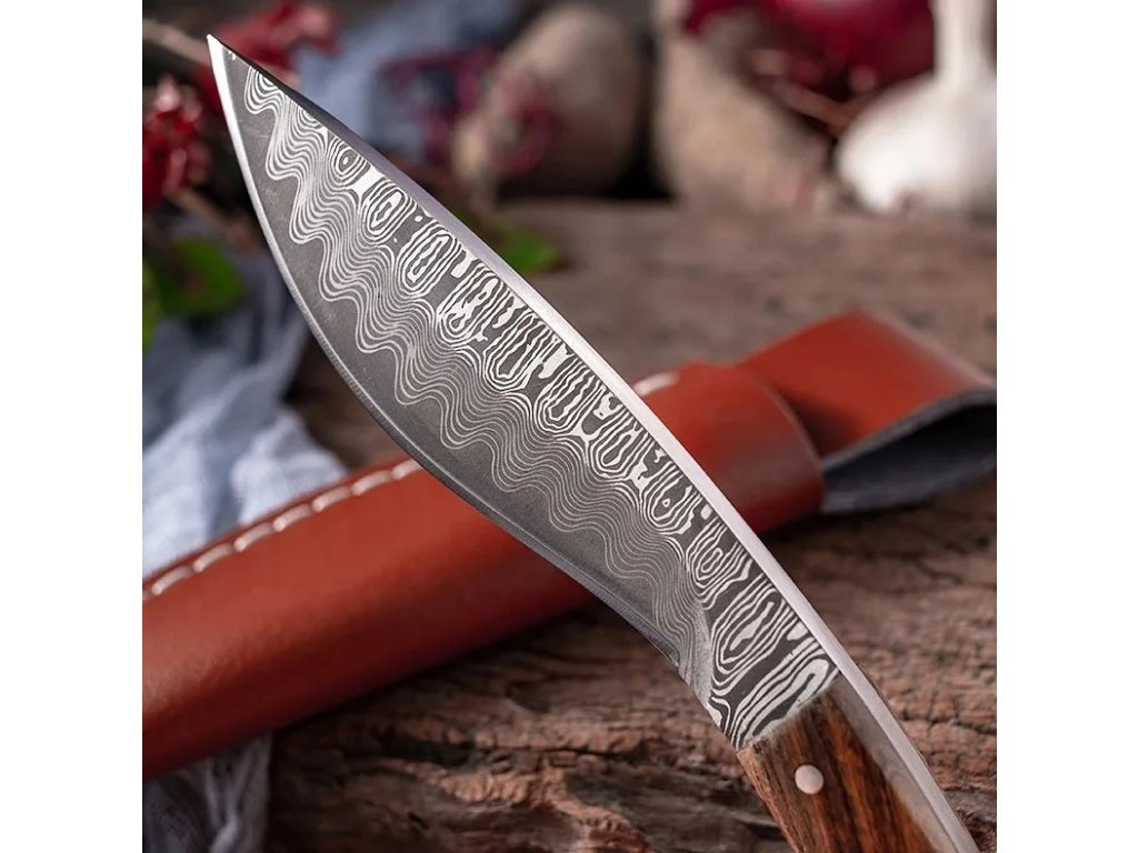 - Čepeľ noža je vyrobená z tvrdej nerezovej ocele zdobenej elegantným vzorom.