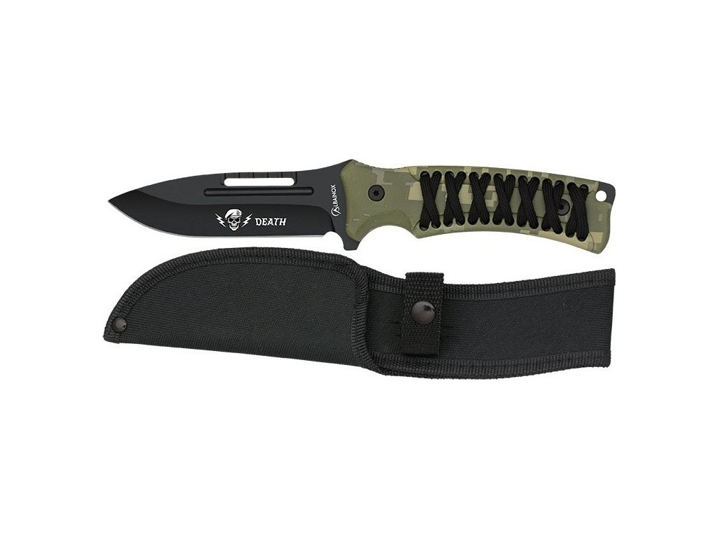 Nôž renomovanej španielskej značky Albainox®, ktorého využijete najlepšie ako univerzálny nástroj pri outdoorových aktivitách. Rukoväť potiahnutá nylonovou šnúrou zaisťuje istý a bezpečný úchop za všetkých okolností.