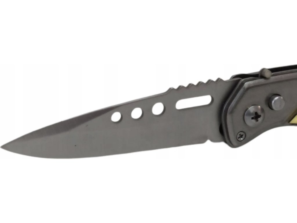 Solídne vyrobený automatický nôž, rozložený tlačidlom. Vyrobený z pomerne kvalitnej nerezovej ocele. Má bezpečnostný zámok, ktorý zabraňuje automatickému rozloženiu alebo zloženiu, ide o poistku na vonkajšej strane horného chrbta noža.