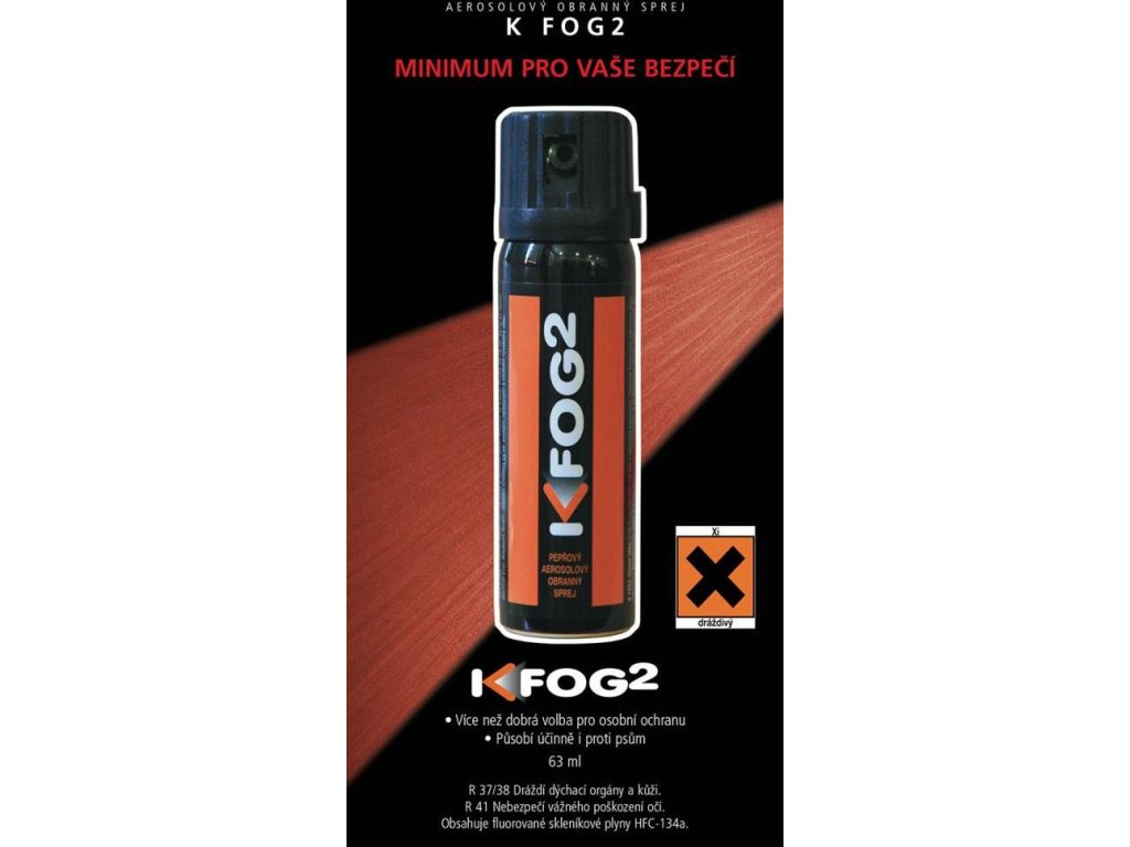 Aerosólový obranný sprej K FOG2 – hmla 3. generácie – je mohutný prúd aerosólu nevyžadujúci presné mierenie, je však citlivejší na poveternostné podmienky. K FOG2 je veľmi vhodný proti väčšiemu počtu útočníkov.