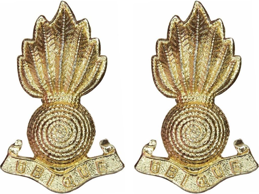 Odznaky golierovej britského Kráľovského delostrelectva Royal Artillery "Ubique" Veľká Británia - sada 2 kusov
