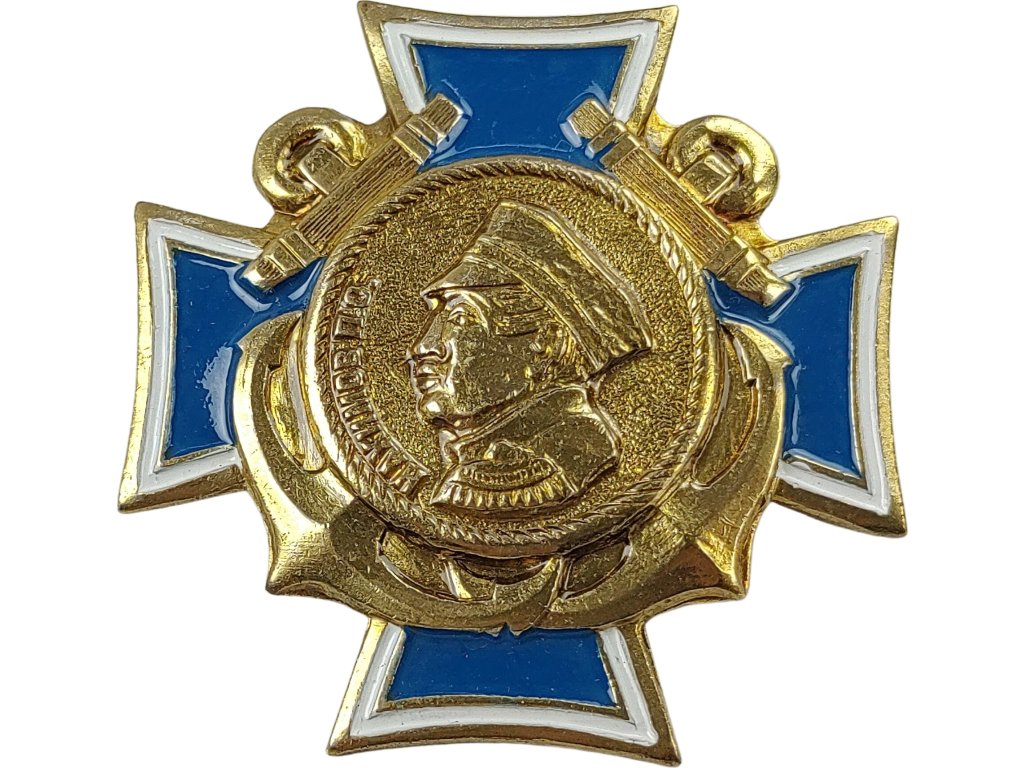 Odznak v tvare modrého kríža s portrétom admirála ruského námorníctva PS Nachimova. Náprsný odznak je zlatej farby a je vyrobený z mosadze.