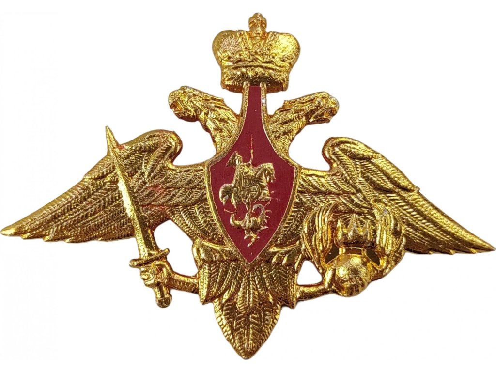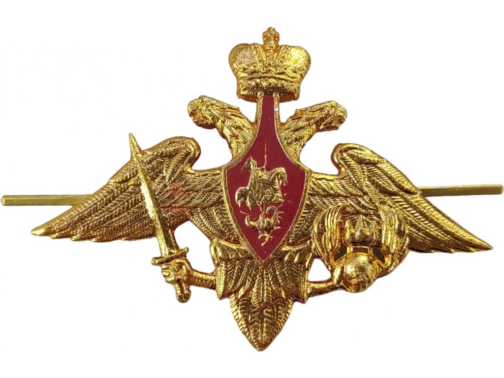 Odznak znázorňuje symboliku ruských ozbrojených síl, konkrétne sa jedná o odznak na pokrývku hlavy. Zlatý dvojhlavý orol s korunou je tradičným symbolom Ruska, historicky spojeným s Ruským impériom a teraz s Ruskou federáciou. Na hrudi orla je umiestnený štít s vyobrazením svätého Juraja zabíjajúceho draka, čo je erb Moskvy a ďalší významný ruský symbol. Orol drží v parátoch meč a horiaci granát.