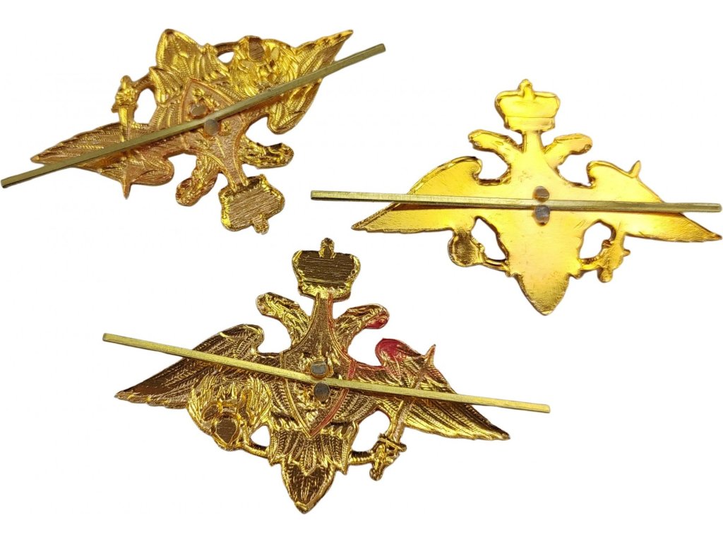 Odznak používaný pozemnými silami Ruskej federácie. Čiapicový odznak, často označovaný ako odznak s imperiálnym orlom.