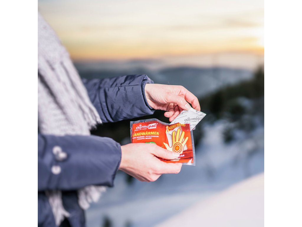- Thermopad® ohrievače rúk často využívajú lyžiari, cyklisti na horských bicykloch alebo návštevníci štadióna. Pre ideálny vývoj tepla by mali byť ohrievače používané v izolovanom prostredí, ako sú vrecká rukavíc alebo bundy alebo vrecká nohavíc.