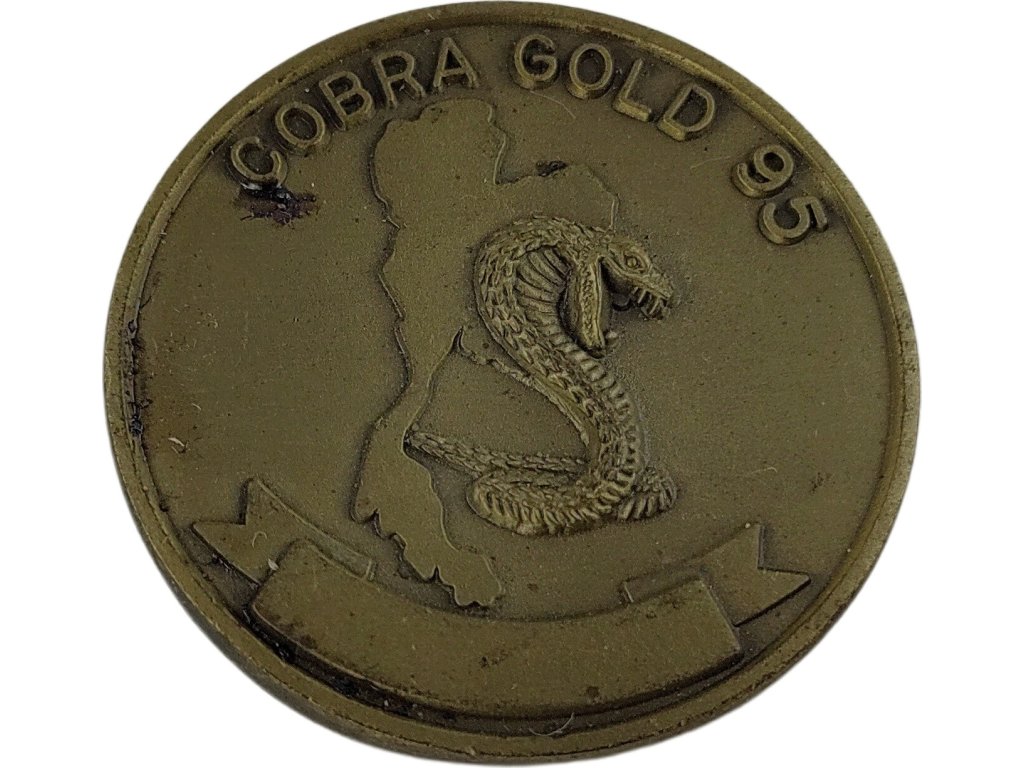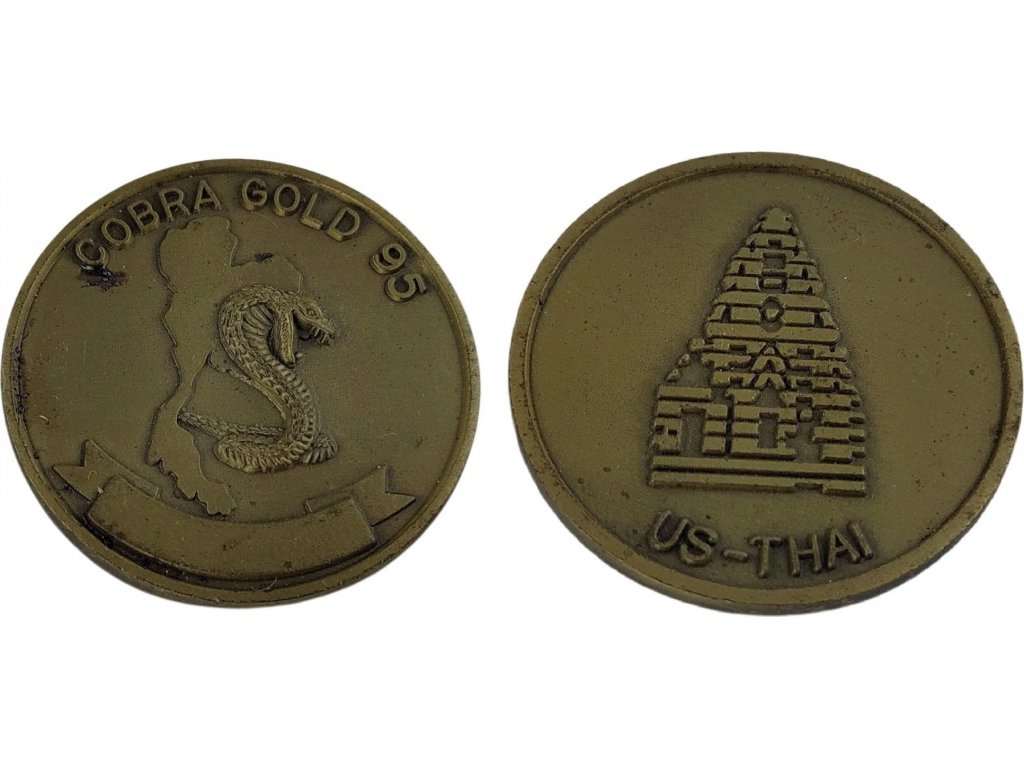 - detailný vysoký reliéf razby s anglickým nápisom: COBRA GOLD 95 US-THAI