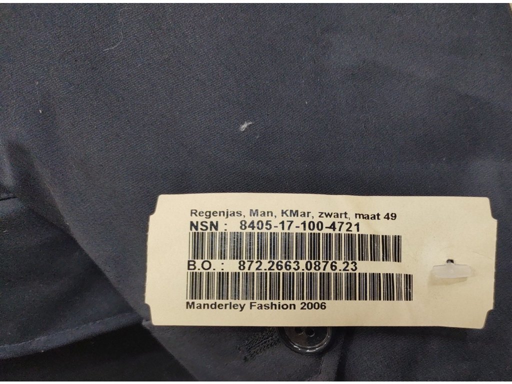- Oficiálny názov: "Regenjas, Man, KMar, zwart, K-MAR M-90".