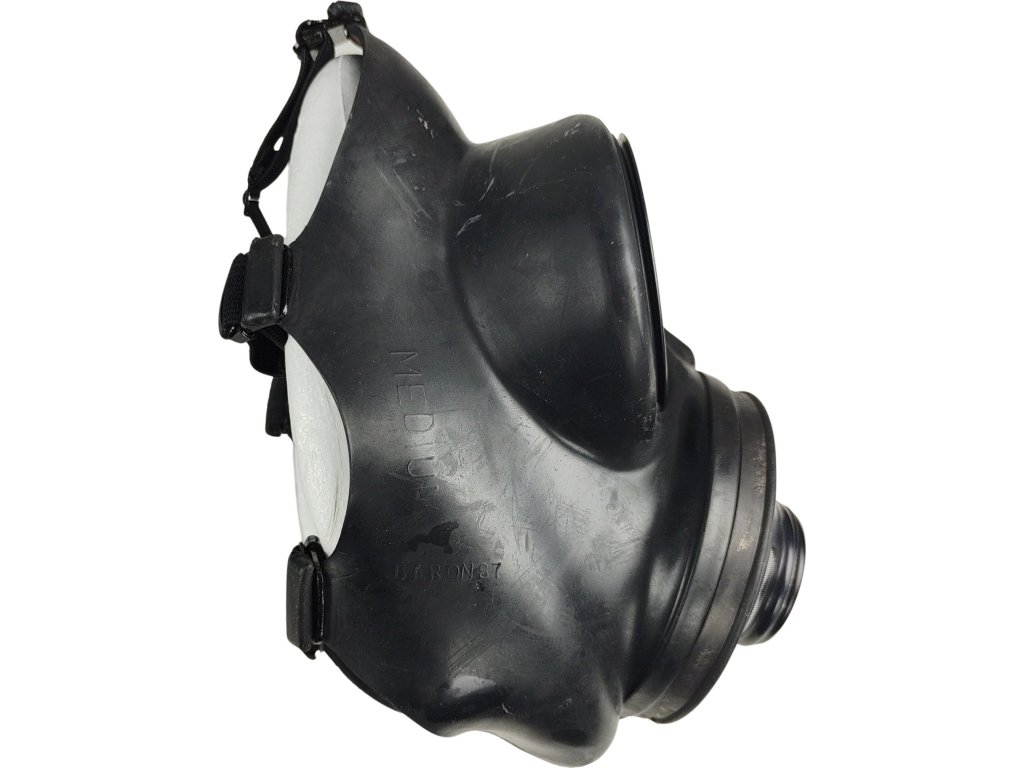 - Vojenská plynová maska značky Avon model CML-BIO C3, kompletná súprava vrátane filtra, priemerovej redukcie filtra a prepravnej tašky.