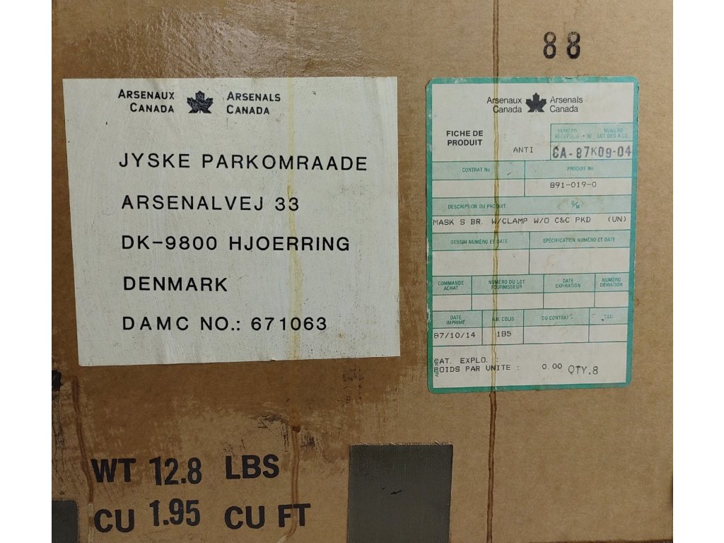 - Tento typ ochranných masiek bol poskytnutý z armádnych zásob Kanady (Arsenals Canada) pre Dánske kráľovstvo („Dánsku ríšu“).