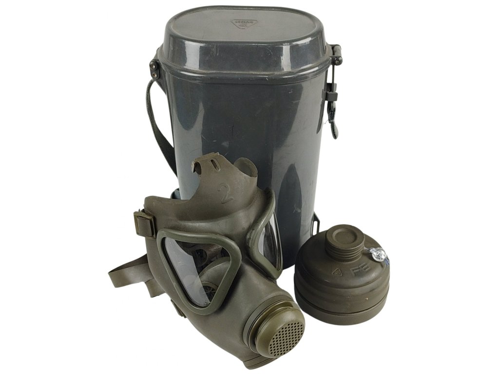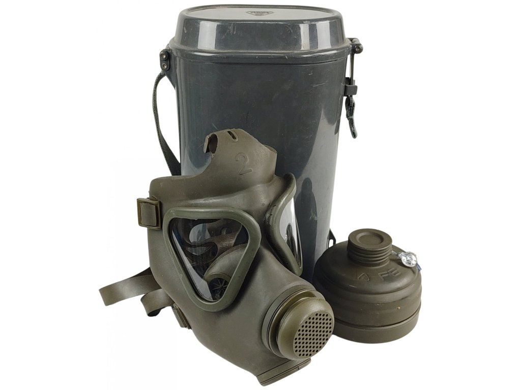 - Plynová maska M65Z Dräger vrátane filtra a plastového prepravného boxu, pochádzajúca z výstroja vojaka nemeckého Bundeswehru.