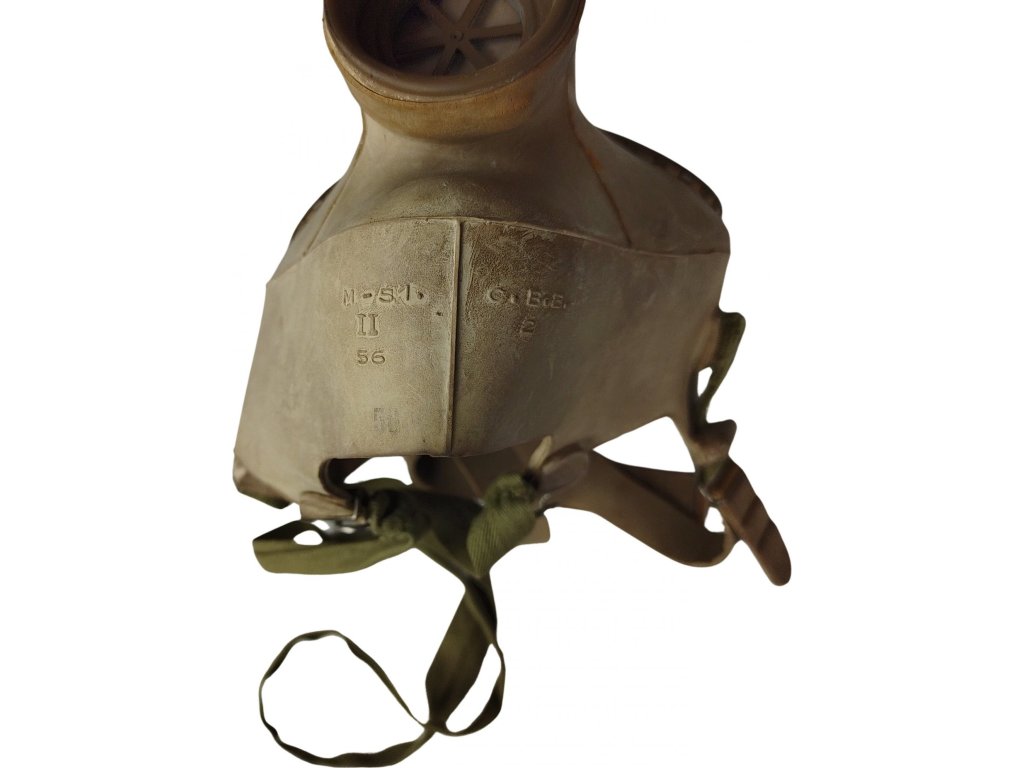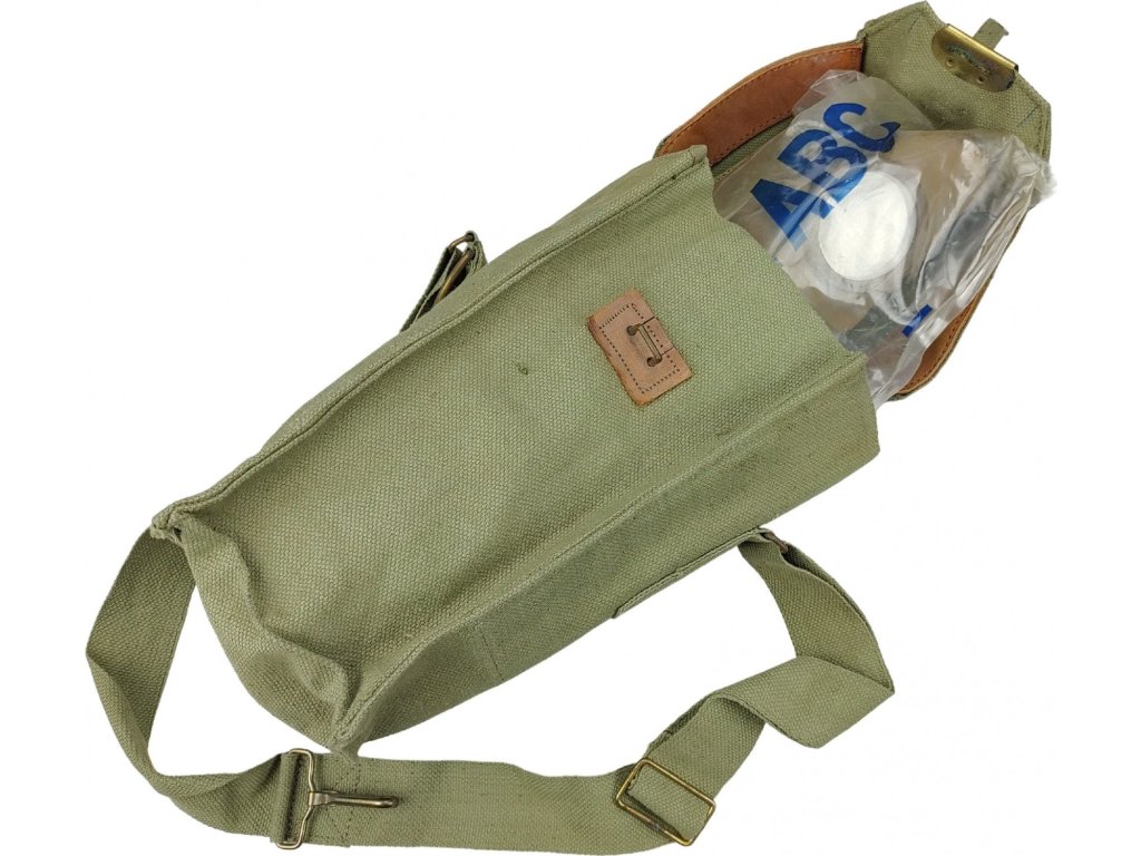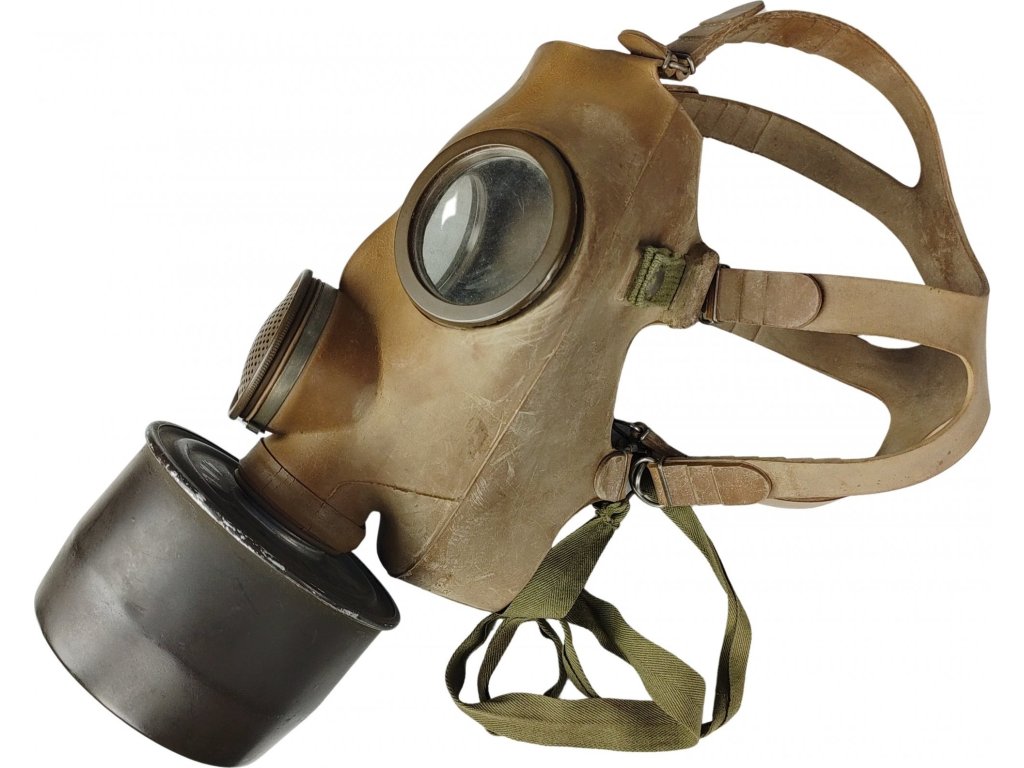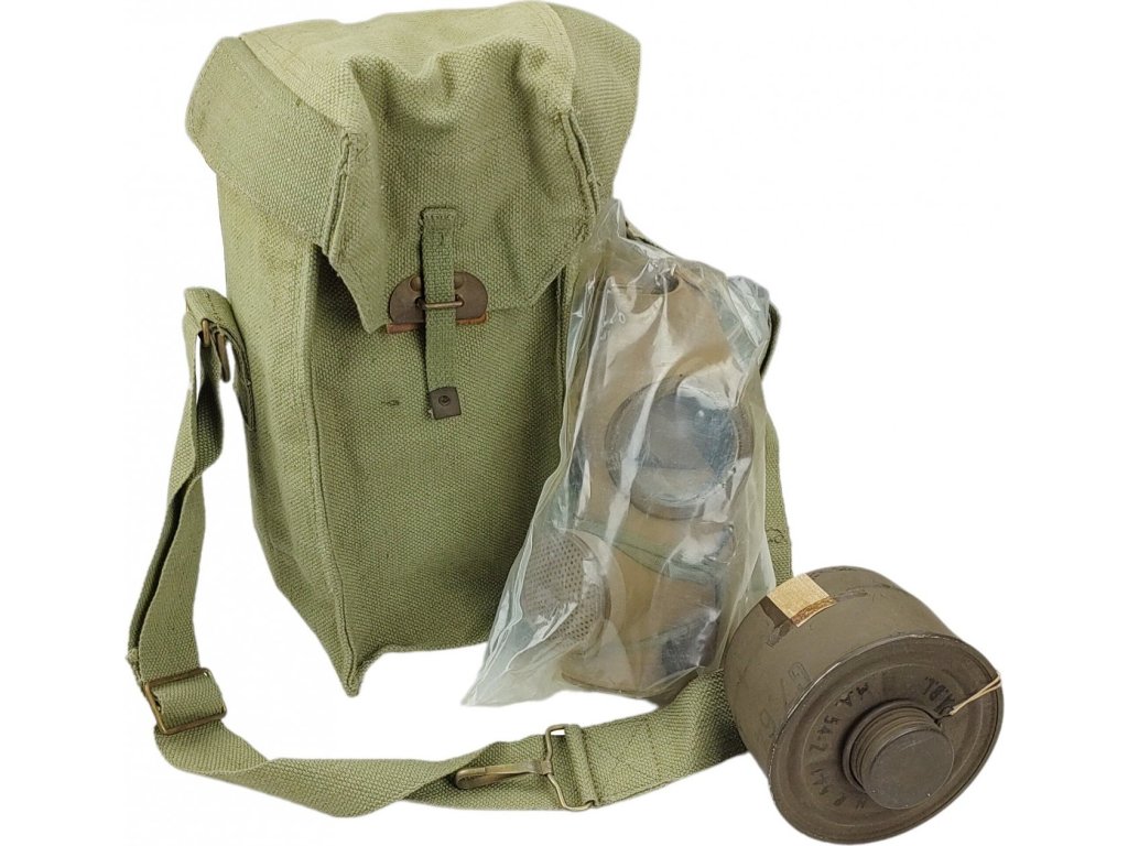Vojenská plynová maska francúzskeho výrobcu model ANP M51 s filtrom a taškou, ktorá bola pôvodne používaná belgickou armádou. Tašky boli vyrobené v 50. rokoch 20. storočia a slúžili až do 90. rokov.