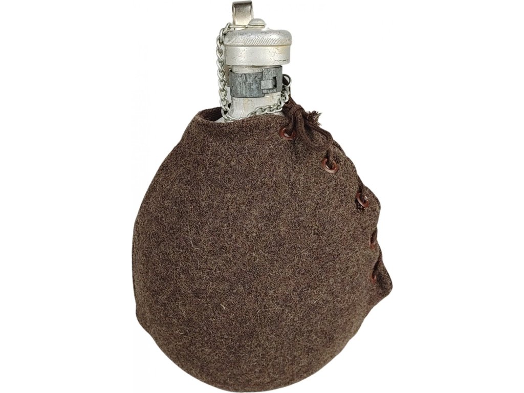 - Poľná hliníková fľaša so skrutkovacím uzáverom a vlneným obalom so šnurovacou šnúrkou.