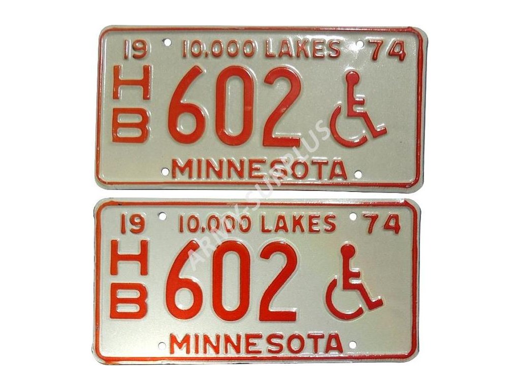 - Séria amerického štátu Minnesota s poradovým číslom 602, doplnený symbolom vozičkára určená pre užívateľov s hendikepom a nápisom 10,000 LAKES.