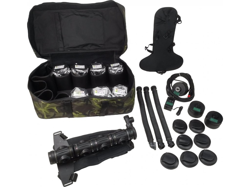 Filtroventilačná jednotka je umiestnená na chrbte. Z tejto jednotky je filtrovaný vzduch rozvádzaný pomocou distribútora. Na distribútor sú pripojené dve vrapové hadice. Jedna privádza vzduch na dýchanie do ochrannej masky, druhá privádza vzduch na ventiláciu odevu do pododevnej časti. Vzduch je vháňaný do distribútora pomocou ventilátora s vlastným zdrojom napätia. Zaujímavé je riešenie tohto odevu, ktoré umožňuje využiť tento odev ako vo ventilovanej variante, tak aj v neventilovanej. V neventilovanom variante sa používa s izolačným dýchacím prístrojom.