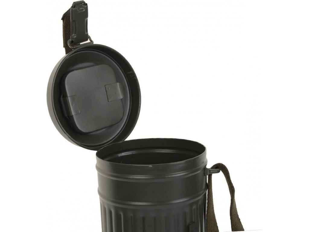 - Okrúhly oceľový kanister zvaný "Gasmaskenbüchse" alebo kanister na plynovú masku, alebo tiež tubus, konzerva či plechovka.