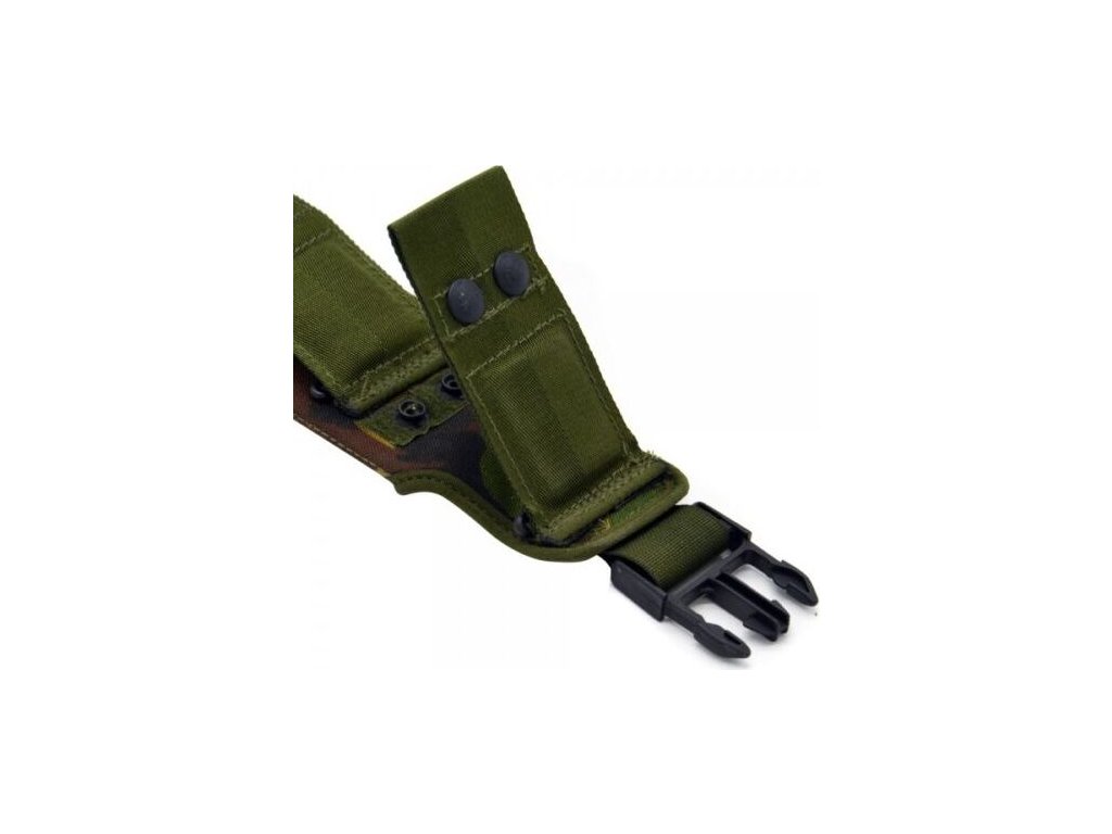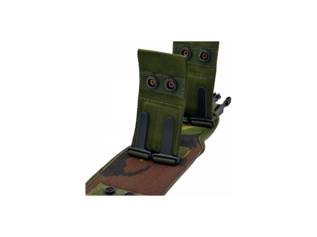 - Puzdro je možné pripnúť k opasku alebo pomocou plastovej spony k výbave PLCE, používanej britskými vojakmi.