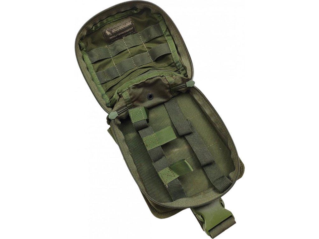 - Malé a odolné taktické puzdro na zdravotné vybavenie prvej pomoci.