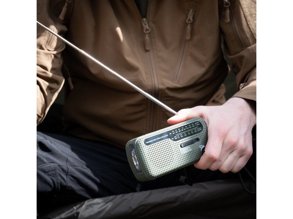 Toto rádio je možné napájať solárnou energiou, ručným dynamom alebo batériami. Vždy budete mať prístup k napájaniu, aj keď v blízkosti nie je zásuvka. Vstavané LED svietidlo poskytuje osvetlenie v tme.