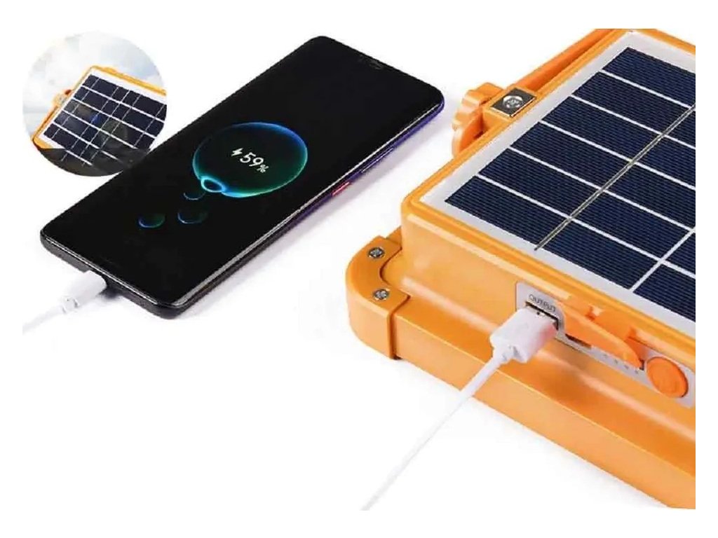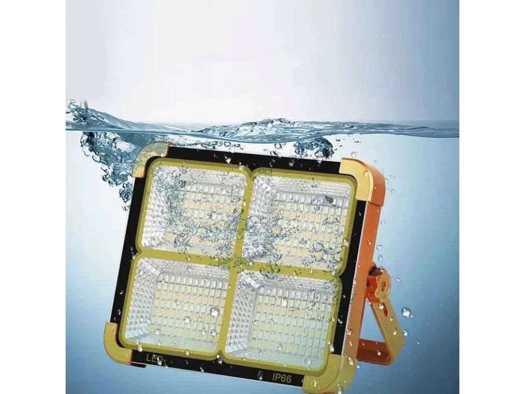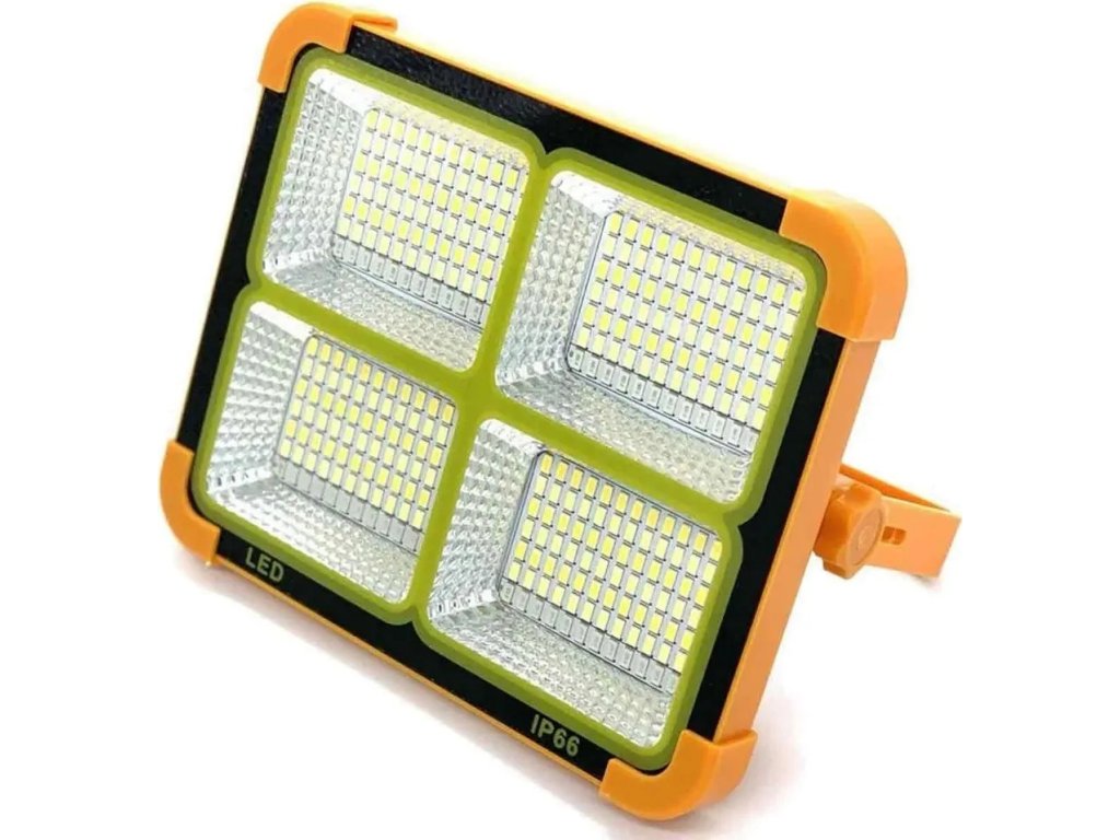 Prenosný LED reflektor so solárnym nabíjaním a powerbankou USB 150W IP66