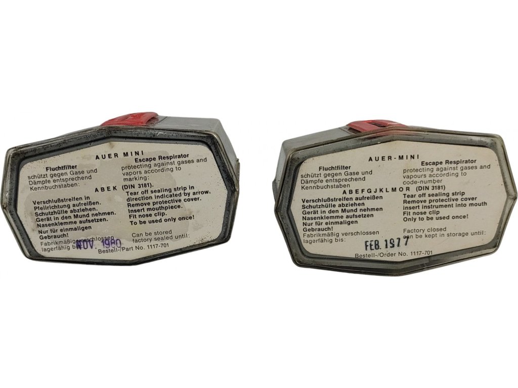 - Respirátor Auer Mini, ktorý chráni proti plynom a výparom typu ABEK (podľa DIN 3181).
