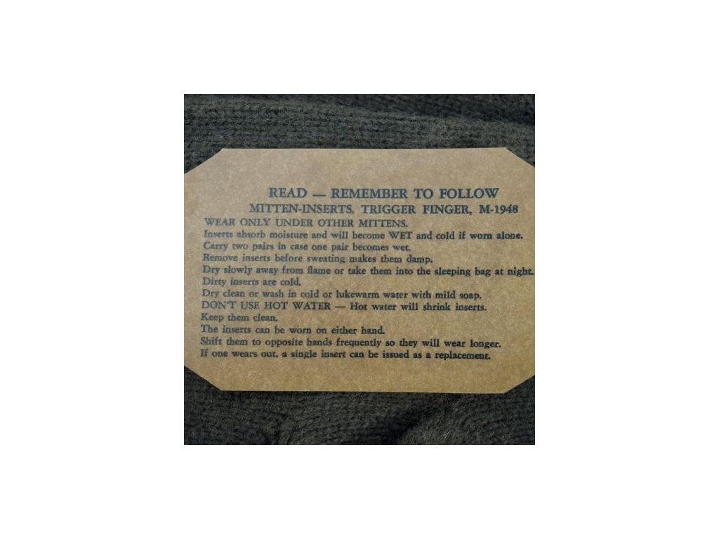 Vlnené prstové palčiaky americkej armády z obdobia vojny vo Vietname. Vydané armádou USA. Sú navrhnuté tak, aby fungovali ako samostatné rukavice alebo ich možno použiť s vonkajšími rukavicami na zvýšenie teploty v chladnom alebo vlhkom počasí.