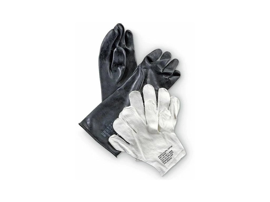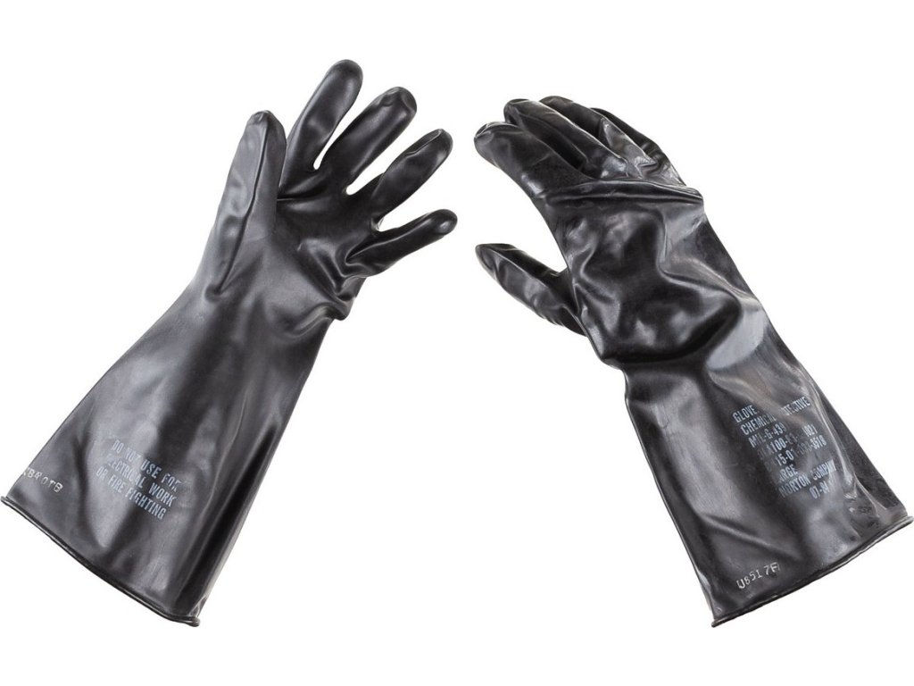 Originálna sada rukavíc na ochranu proti chemikáliám. Obsahuje bavlnené vložky a gumové vonkajšie rukavice. Gumové rukavice sú čierne a bavlnené vložky bielej. Skvelý doplnok do akejkoľvek záchrannej sady. Sú tiež skvelé na prácu s chemikáliami alebo olejom. Vyrobené tak, aby odolali všetkým druhom chemikálií, a vyrábajú sa v USA podľa vládnych špecifikácií. Sady rukavíc NOS sú stále zapečatené v originálnom vládnom balení.
