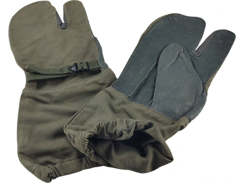Rukavice prevlekové trojprsté návleky s koženou dlaňou Bundeswehr (BW) originálne použité