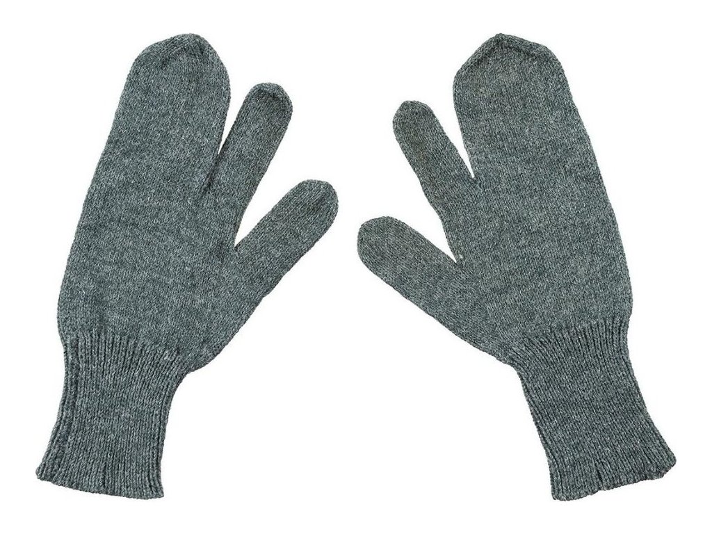 Originálne rukavice z výstroja armády Švajčiarska. Pletený materiál z prírodnej šedej vlny. Trojprstá konštrukcia rukavíc pre ľahkú streľbu so zbraňou. Vhodné ako vložka do rukavíc, alebo na nosenie samostatne.