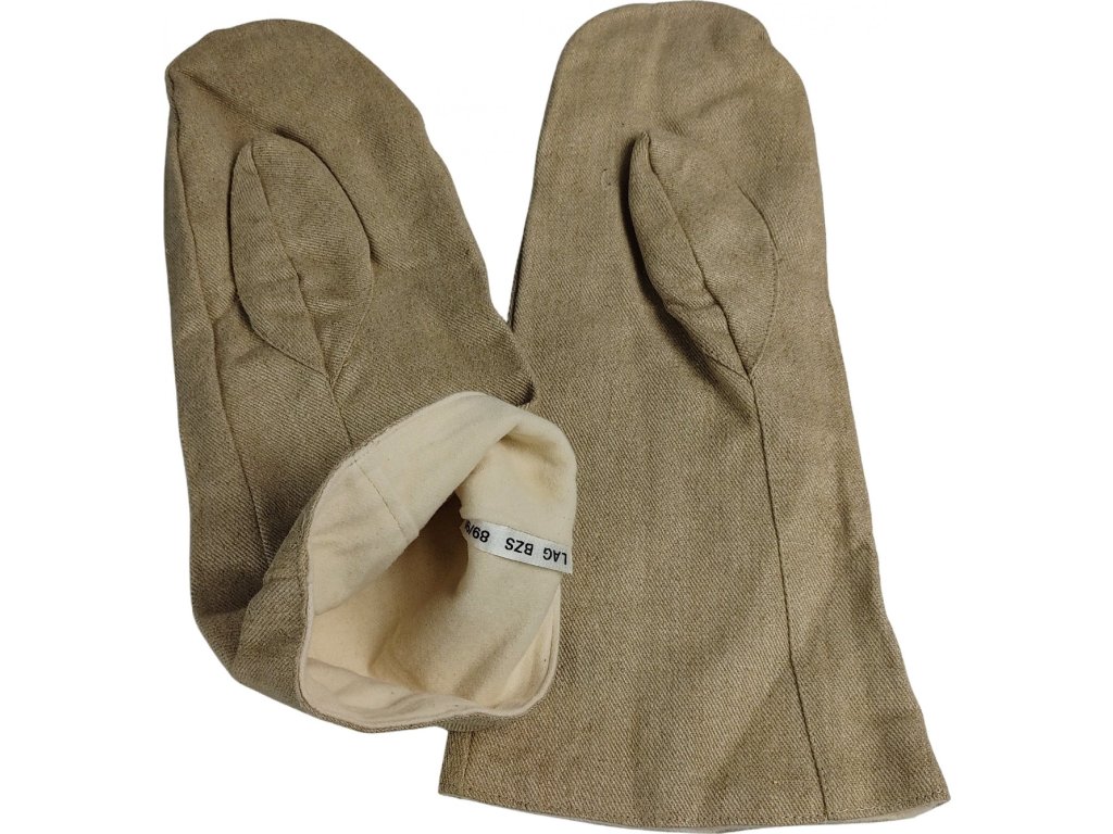 Originálne švajčiarske armádne zimné hrejivé palčiaky, vyrobené z extra kvalitných a čisto prírodných materiálov. Vonkajší materiál rukavíc je vyrobený z tkaniny, ktorá je zložená z 50% ľanu a 50% bavlny, vnútorná hrejivá podšívka s jemne česaným chlpom je zo 100% vlneného flanelu, extra hrejivého a veľmi príjemného na dotyk. Nepoužité vojenské zásoby, pochádzajúce z armádnych prebytkov švajčiarskej armády.