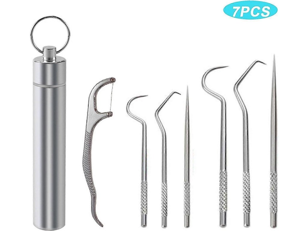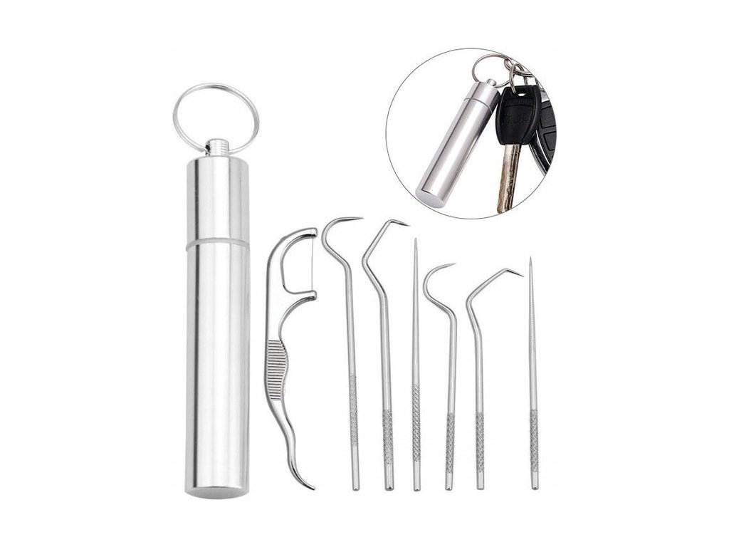 Sada špáradiel z nerezovej ocele opakovane použiteľné 7 kusov cestovných nástrojov na ústnu hygienu s puzdrom na kľúče