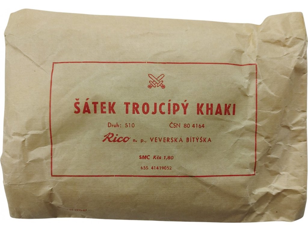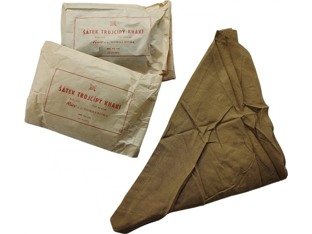Originálna, jednofarebná, trojuholníková vojenská šatka so širokou škálou možností využitia, štandardne používaná vo výstroji Československej ľudovej armády, obľúbená Skautskými oddielmi, táborníkmi, trampmi, cestovateľmi, milovníkmi outdooru. Dve strany šatky sú obrúbené, tretia strana je bez obrúbenia.
