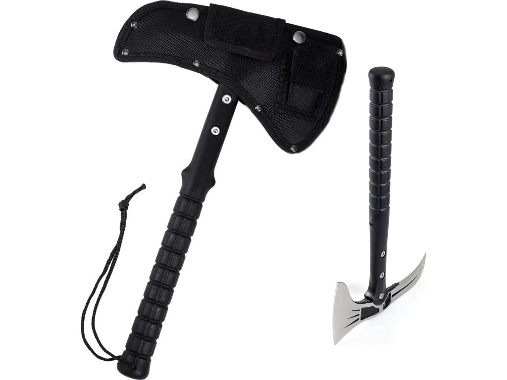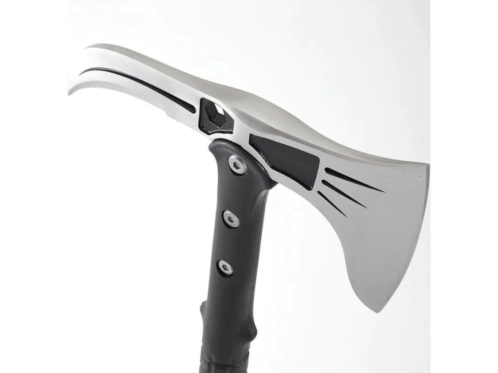 - Tomahawk: Celkový tvar a dizajn je charakteristický pre moderné taktické tomahawky, ktoré kombinujú sekeru so zahnutým hrotom.