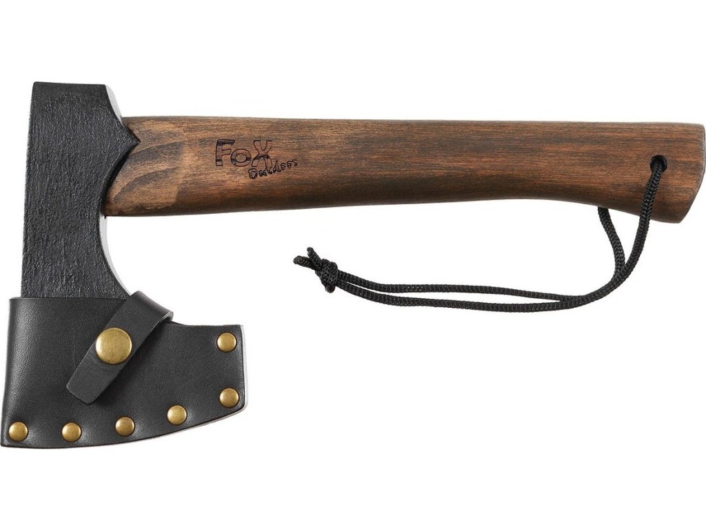 - Ergonomická, drevená rukoväť s očkom a šnúrkou, doplnená štýlovým gravírovaným logom FoX® Outdoor.