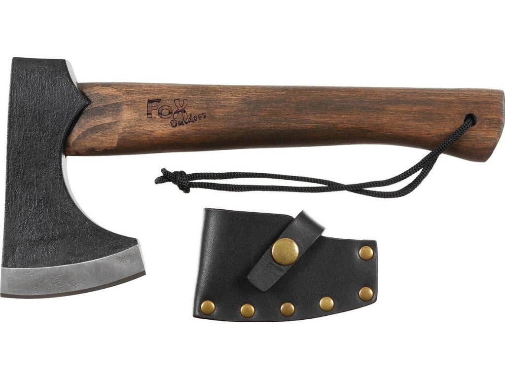 Sekera "Viking" s drevenou rukoväťou a koženým puzdrom FoX® Outdoor 27750