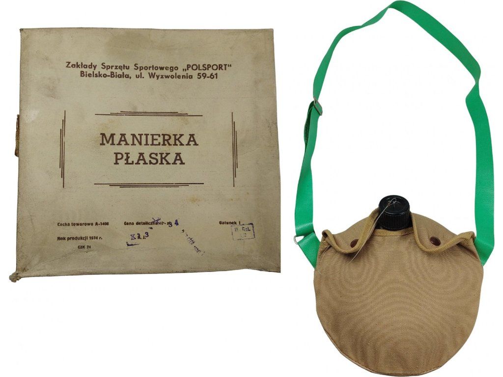 Historická poľská skautská čutora zvaná „manierka płaska“. Výrobcom bol Zakłady Sprzętu Sportowego „POLSPORT“ v Bielsku-Białé. Hliníková fľaša objemu 950 ml, obalená pláteným obalom s popruhom na nosenie cez rameno.