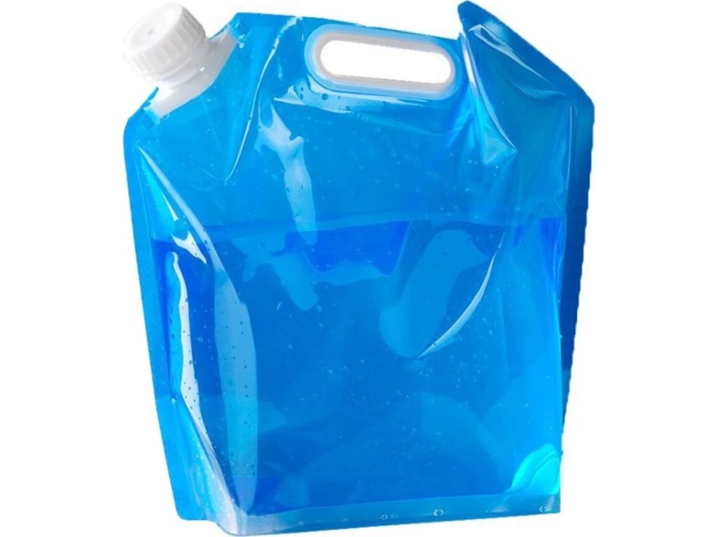 Skladací kanister na vodu, často označovaný aj ako skladací vak alebo transportný vak na vodu.