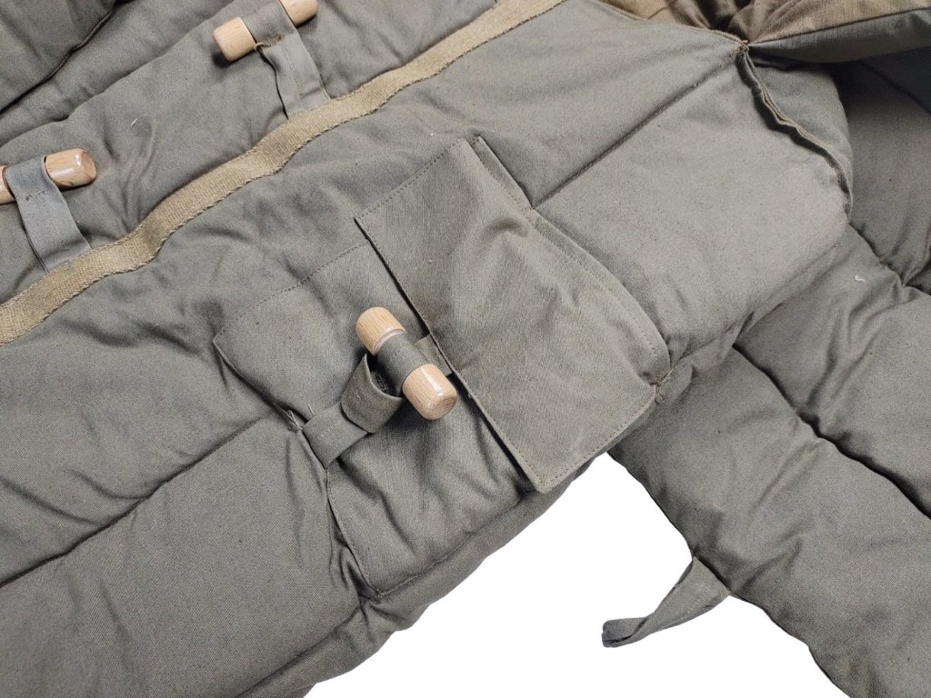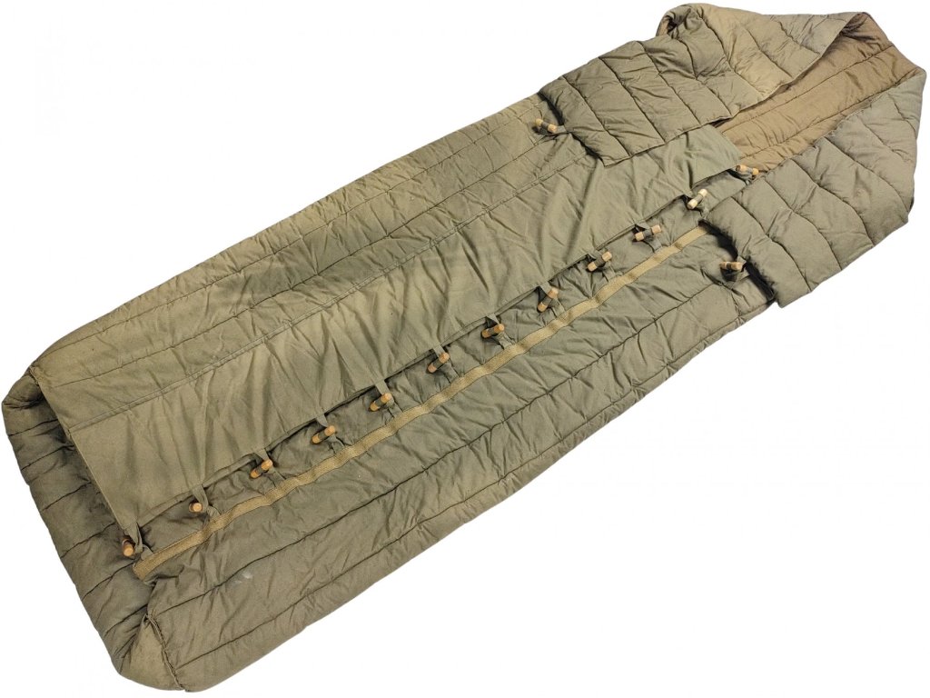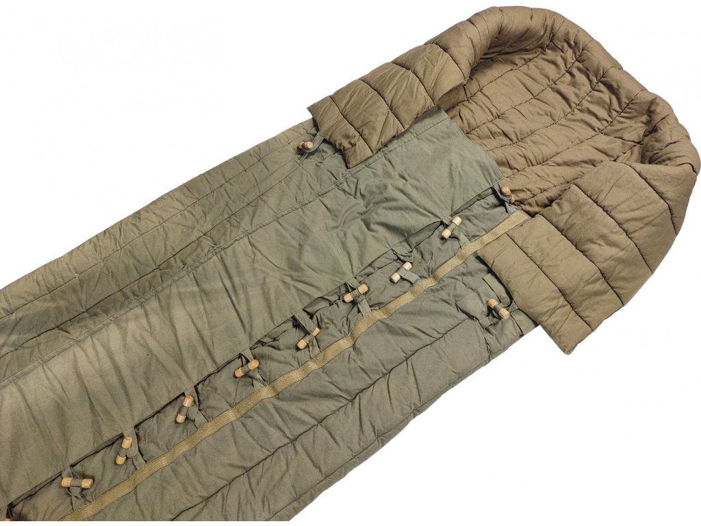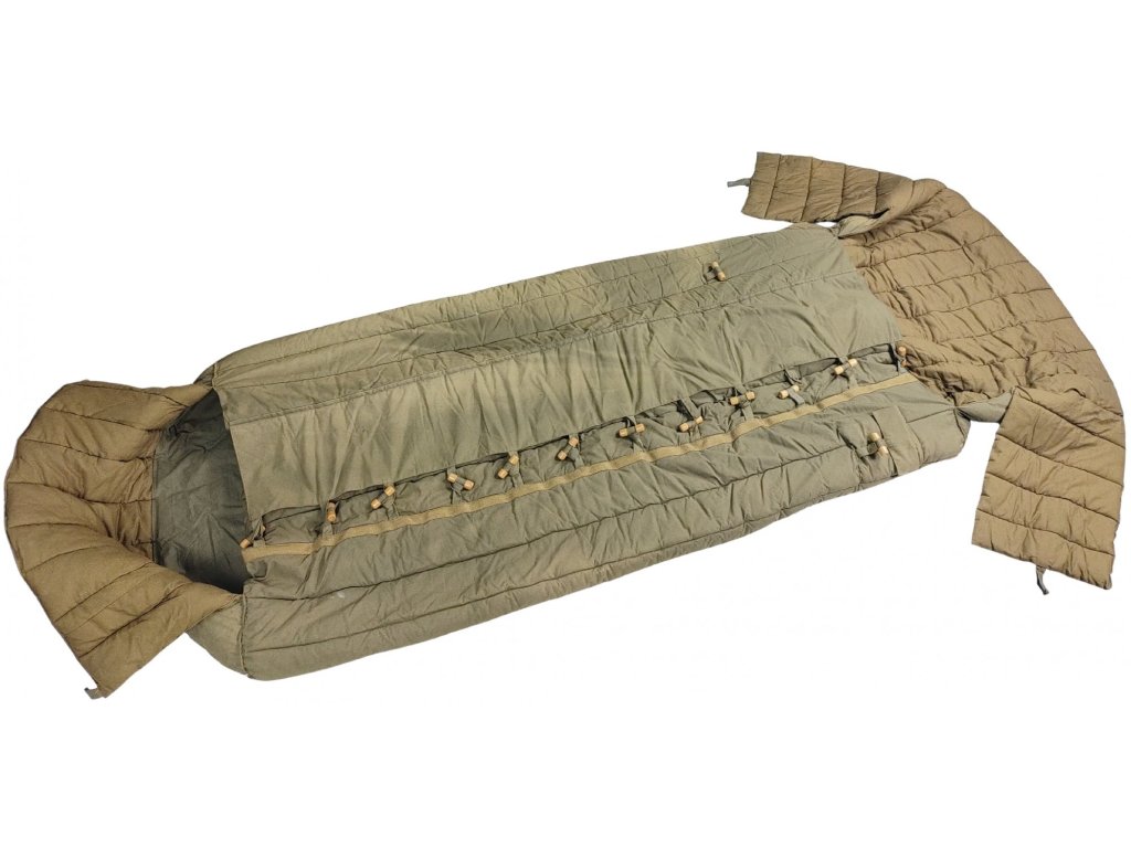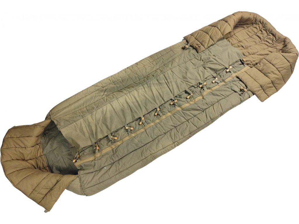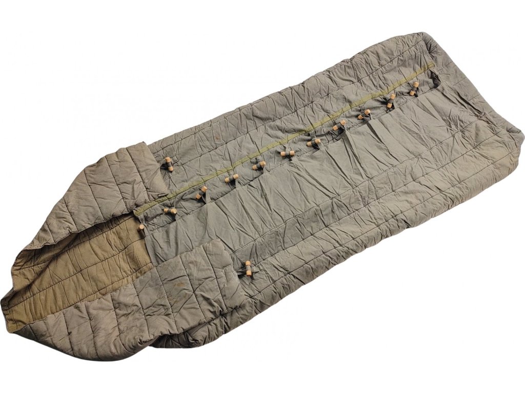 Odsunový spací vak vzor 52 pre zranených vojakov z vybavenia Československej ľudovej armády (ČSLA). Originál prešívaný vak - evakuačný spacák pre zranených. Tento spací vak je možné použiť ako klasický spací vak, ale vplyvom svojej vyššej hmotnosti cez 8 kilogramov je vhodný skôr do chaty a domácich zázemí. Plne rozložiteľný, so zapínaním po celej prednej dĺžke na drevené olivky.