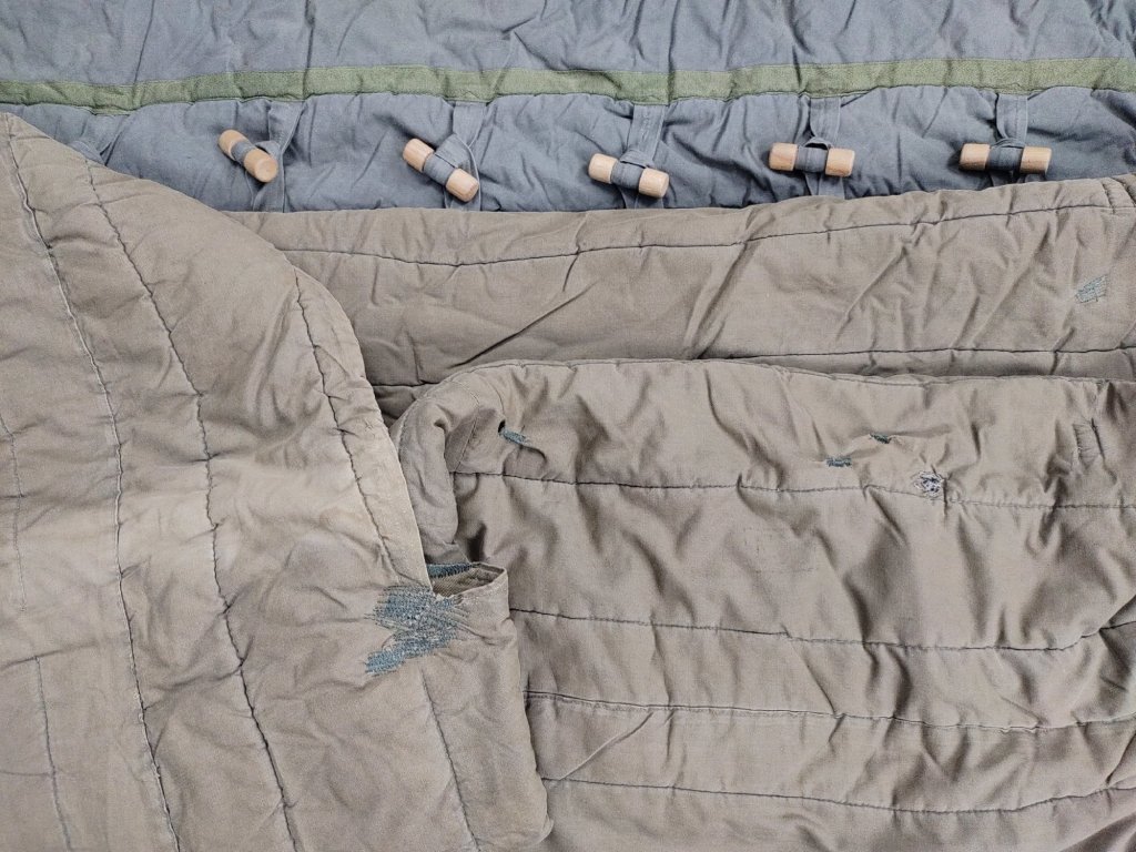 - Použitý tovar 2. akosti (spacie vaky sú viac opotrebované, majú vyblednuté farby, znečistenie, opravy a drobné trhliny, niektoré drevené olivky môžu chýbať, nesú stopy dlhodobého skladovania, viď. fotografie).