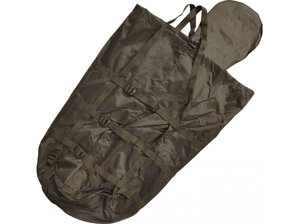 Obal je valcového tvaru a je zhotovený z nepremokavej tkaniny. Kompresné popruhy umožňujú stiahnutie uloženého obsahu do čo najmenšieho objemu. Cez dno obalu v tvare kruhu sú kolmo na seba našité dva kompresné popruhy. Jeden z dvoch popruhov je zdvojený – prvý popruh je napevno našitý na dno obalu, druhý popruh je voľný, prišitý iba na dno obalu (40 až 50) mm od kraja popruhu. Zdvojené popruhy umožňujú nesenie zbaleného vreca. Popruhy sú široké (20 ±3) mm a dlhé (420 ±20) mm. Konce popruhov sú opatrené 4 sponami, do ktorých sú navlečené dva (1570 ±30) mm dlhé vertikálne popruhy šírky (20 ±3) mm, konce vertikálnych popruhov sú zabezpečené proti štiepeniu podohnutím a prešitím. Na plášti obalu sú našité ďalšie tri horizontálne kompresné popruhy široké (20 ±3) mm a dlhé (1220 ±30) mm, z ktorých každý je opatrený jednou sponou. Vertikálne popruhy sú prevlečené pod hornými tromi horizontálnymi popruhmi. V hornej časti obalu je tunelík šírky (20 ±3) mm prevlečenou sťahovacou šnúrou, ktorá je opatrená samosvorkou a zaistená proti štiepeniu. Otvor obalu je možné zospodu prekryť oválnou krycou chlopňou.