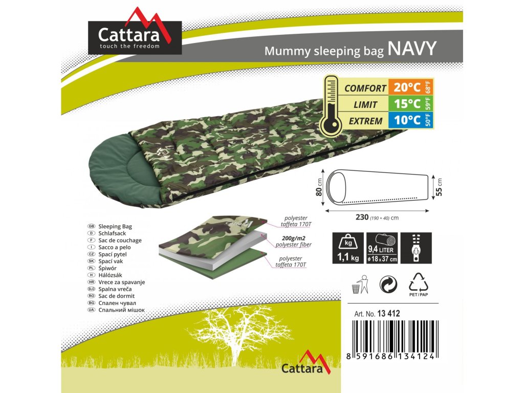 Spací vak múmie maskovacie Woodland camo NAVY Cattara