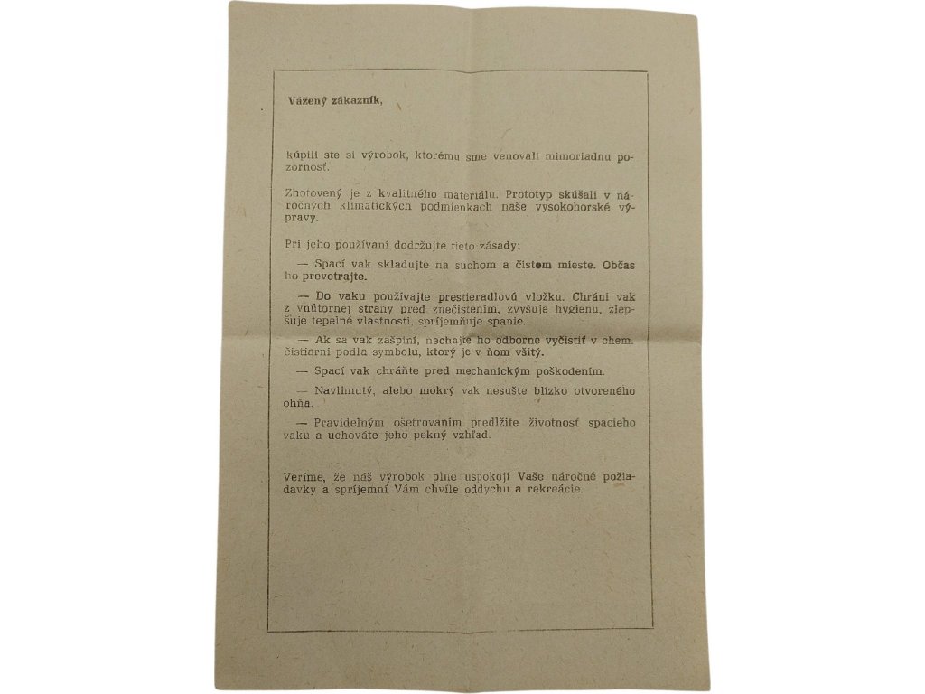 - Zánovný stav (spacie vaky sú nepoužité, nesú však stopy dlhodobého skladovania a majú ľahko vyblednuté farby, viď. fotografie).