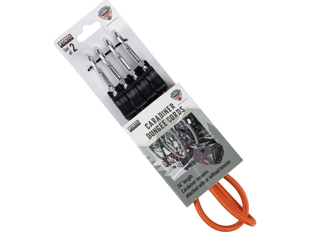 Oranžová sada 2 kusov sťahovacích šnúr s dvojitou karabínou 60 cm Fosco™ Carabiner Bungee Cords