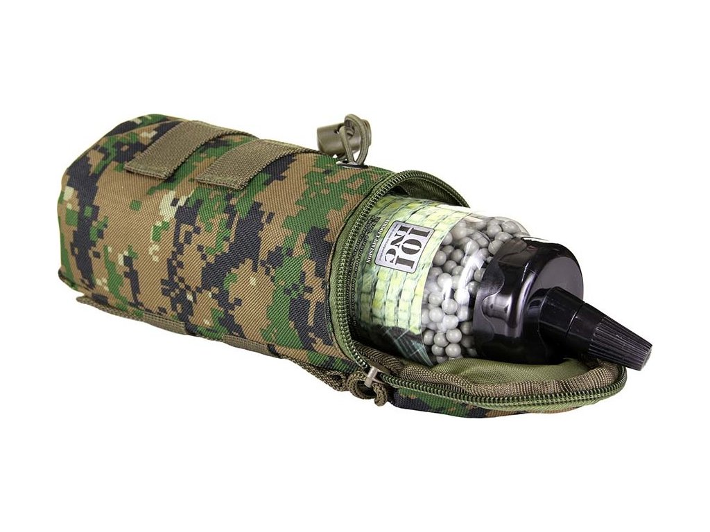 - Taktické, silne polstrované puzdro na uloženie fľaše na airsoft, guličiek BBs, alebo iného drobného vybavenia.