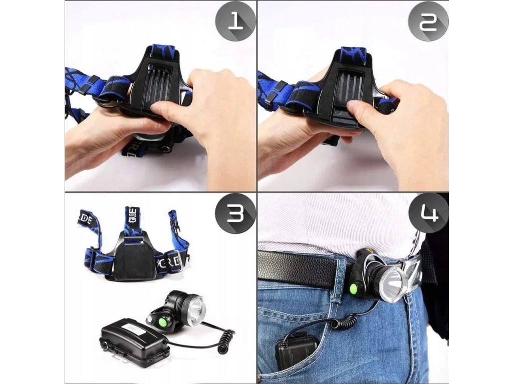 Napájanie je riešené dvoma akumulátormi pracujúcimi s napätím 3,7 V. Akumulátory sa umiestňujú do puzdra, ktoré je umiestnené vzadu na tyle hlavy a je prepojené so samotným osvetlením pomocou špirálového kábla, ktorý je vedený po jednom z troch popruhov.