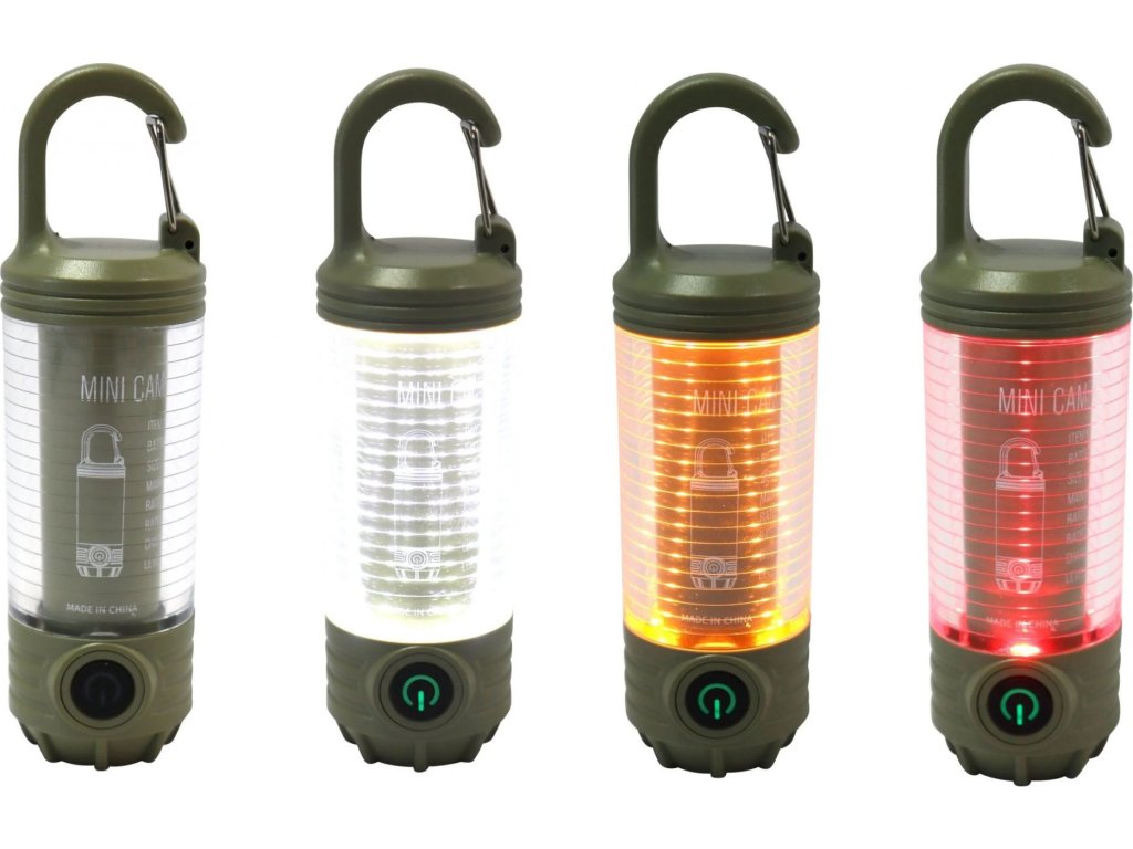 - Campingové vreckové LED svietidlo / nabíjací lampáš s karabínou na zavesenie.
